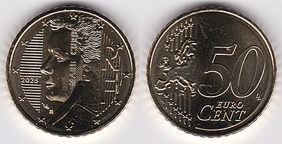![]() km1411 20 Euro cents (2007--) Relief map of Europe | ![]() km1287 50 Euro Cents (1999-2006) | ![]() km3325 50 Euro Cents (2024--) Marie Curie | ||