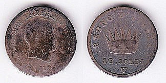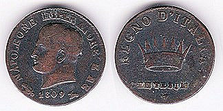 ![]() Italy - Kingdom of Napoleon c5 5 Soldi (1808-1814) | ![]() Italy - Kingdom of Napoleon c6 10 Soldi (1808-1813) | ![]() Italy - Kingdom of Napoleon km11 20 Lire (1808-1814) | ||