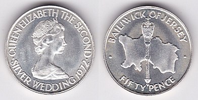 ![]() km260 50 Pence (2013) Coronation | ![]() km36 1 Pound (1972) 25th wedding anniversary | ![]() km51 1 Pound (1981) Battle of Jersey | ||