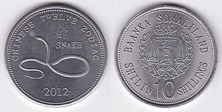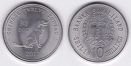 ![]() km59 10 Shillings (2012) Dog | ![]() km60 10 Shillings (2012) Dragon | ![]() km61 10 Shillings (2012) Horse | ||