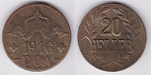![]() km12 10 Heller (1908-1914) | ![]() km15 20 Heller (1916) cu | ![]() km15a 20 Heller (1916) | ||