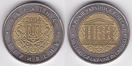 ![]() km205 5 Hryven (2004) 2,500 Years Baloklavi | ![]() km204 5 Hryven (2004) Pivdenne Space Design Office | ![]() km220 5 Hryven (2004) 50 yrs. in UNESCO | ||