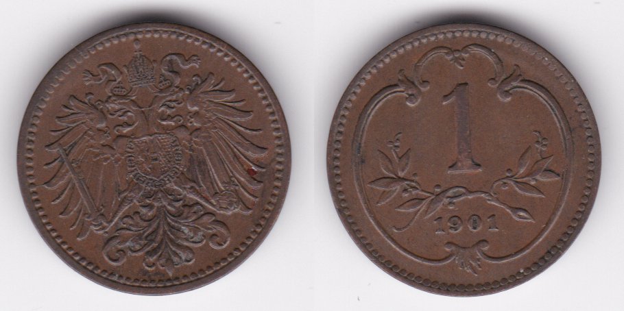 ![]() | 107301 | Austria | 1901 | km2800 | 1 Heller (1892-1916) Franz Joseph I (5 available) | $3.50 | A |