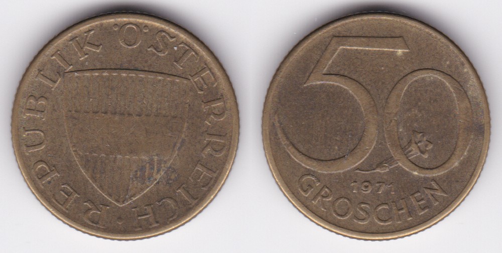 ![]() | 112516 | Austria | 1959 | km2885 | 50 Groschen (1959-2001) | $0.50 | A |