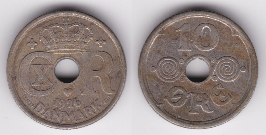 ![]() | 110961 | Denmark | 1925 | km822.1 | 10 Ore (1924-1926) initials HCN | $0.25 | A |