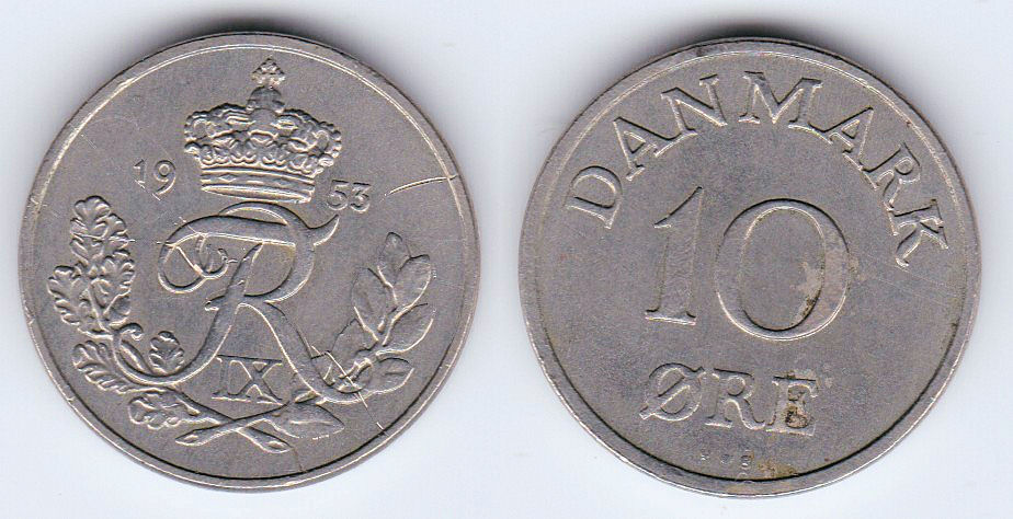 ![]() | 71723 | Denmark | 1953 | km841.1 | 10 Ore (1948-1955) initials NB (2 available) | $0.25 | A |