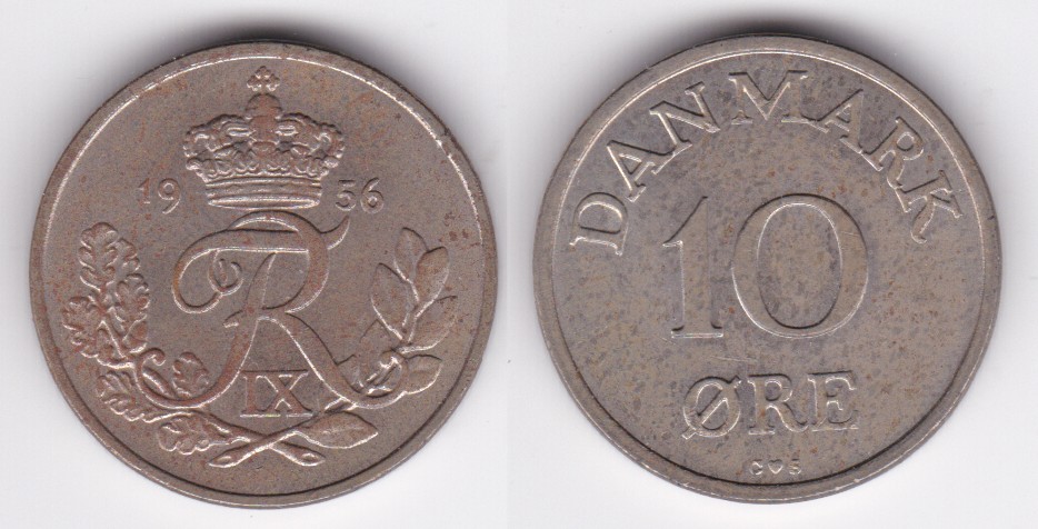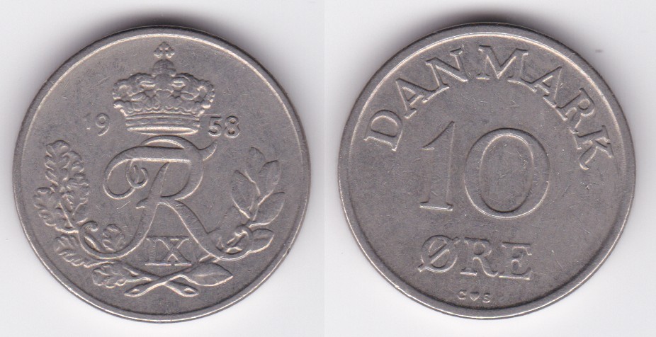 ![]() | 102326 | Denmark | 1958 | km841.2 | 10 Ore (1956-1960) (6 available) | $0.25 | A |