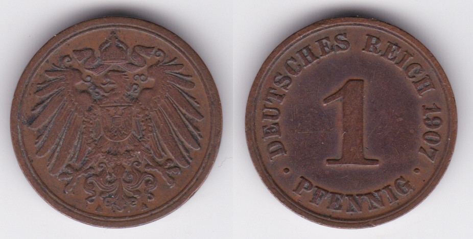 ![]() | 112718 | German Empire | 1907-A | km10 | 1 Pfennig (1890-1916) | $1.50 | A |