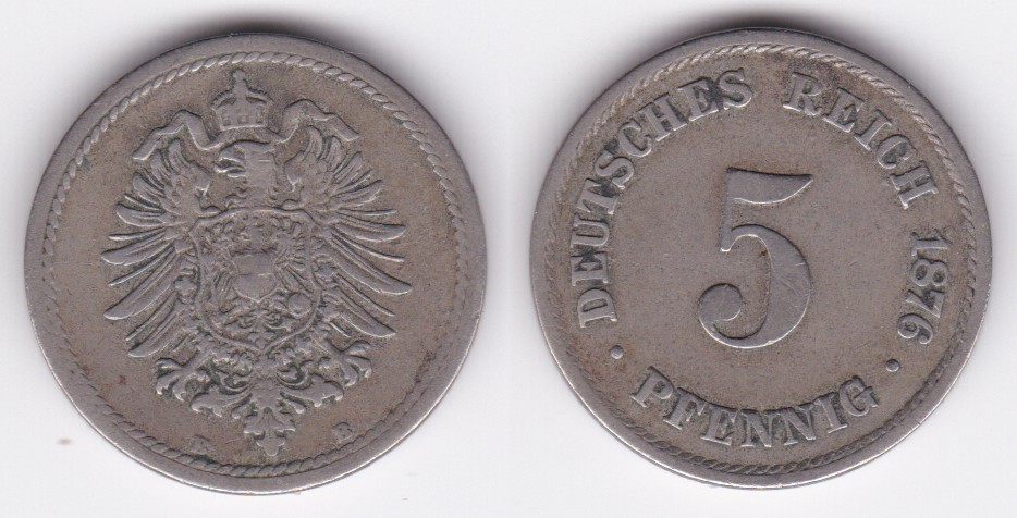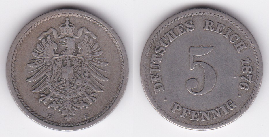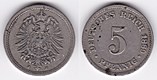![]() | 112732 | German Empire | 1876-E | km3 | 5 Pfennig (1874-1889) | $9.00 | A |
