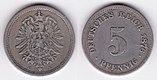 ![]() | 112478 | German Empire | 1874-C | km3 | 5 Pfennig (1874-1889) | $1.00 | A |