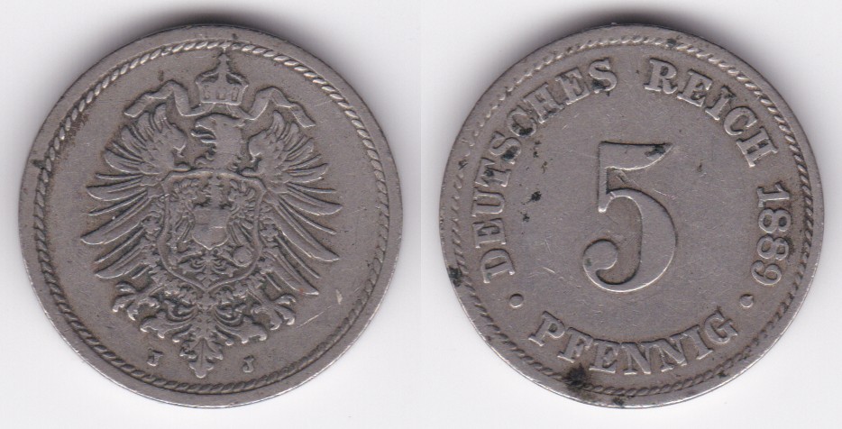 ![]() | 69173 | German Empire | 1889-J | km3 | 5 Pfennig (1874-1889) | $1.75 | A |