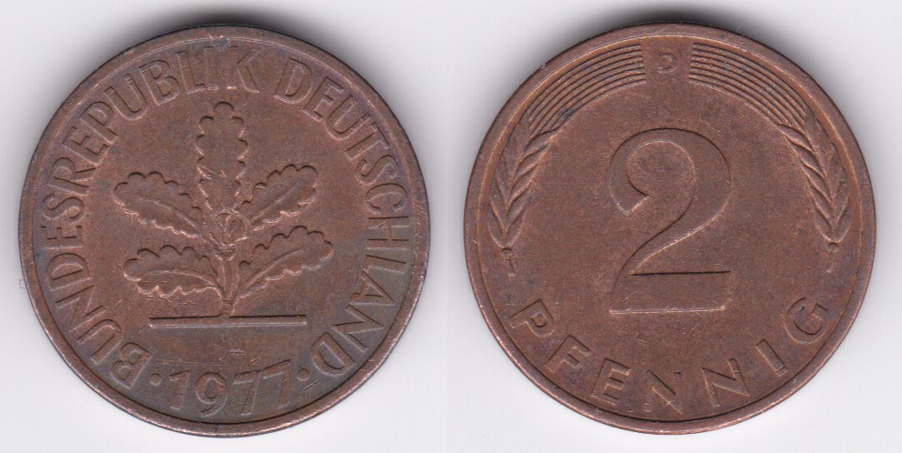 ![]() | 115598 | German Federal Republic | 1977-D | km106a | 2 Pfennig (1969-2001) | $0.25 | A |
