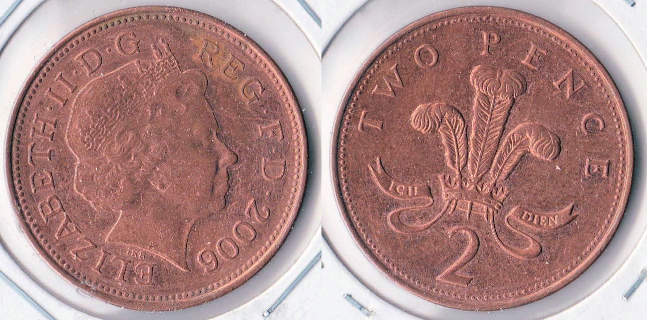 ![]() | 77967 | Great Britain | 2006 | km987 | 2 Pence (1998-2008) copper plated steel | $0.25 | A |