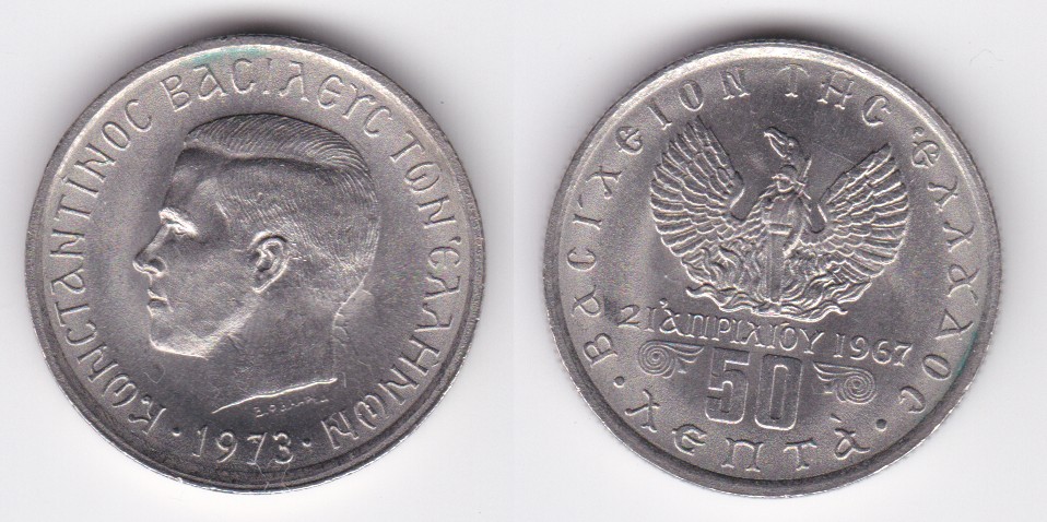![]() | 64705 | Greece | 1973 | km97.1 | 50 Lepta (1971,1973) small head (2 available) | $0.50 | A |