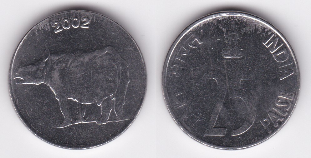 ![]() | 114382 | India Republic | 2002 | km54 | 25 Paise (1988-2002) Rhinoceros (6 available) | $3.00 | A |