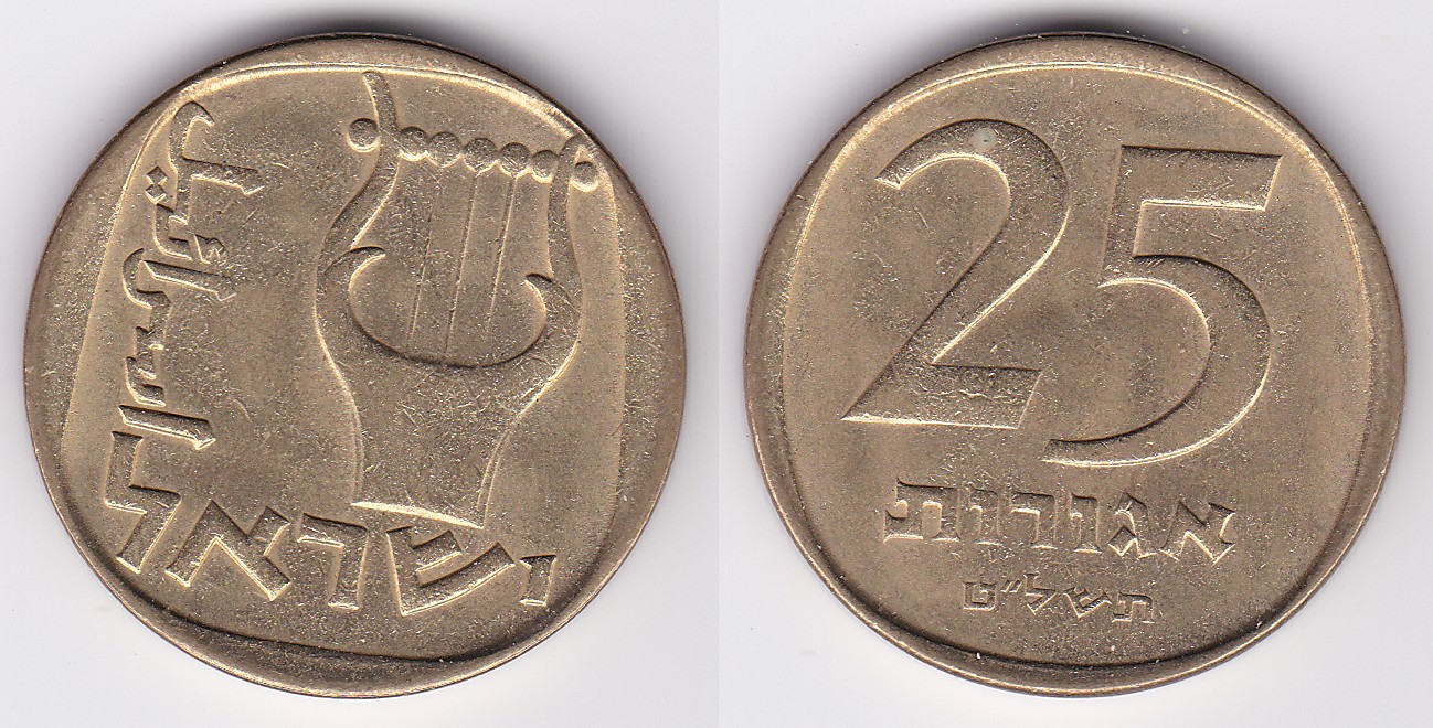 ![]() | 108923 | Israel | 1960 | km27 | 25 Agorot (1960-1979) | $0.25 | A |