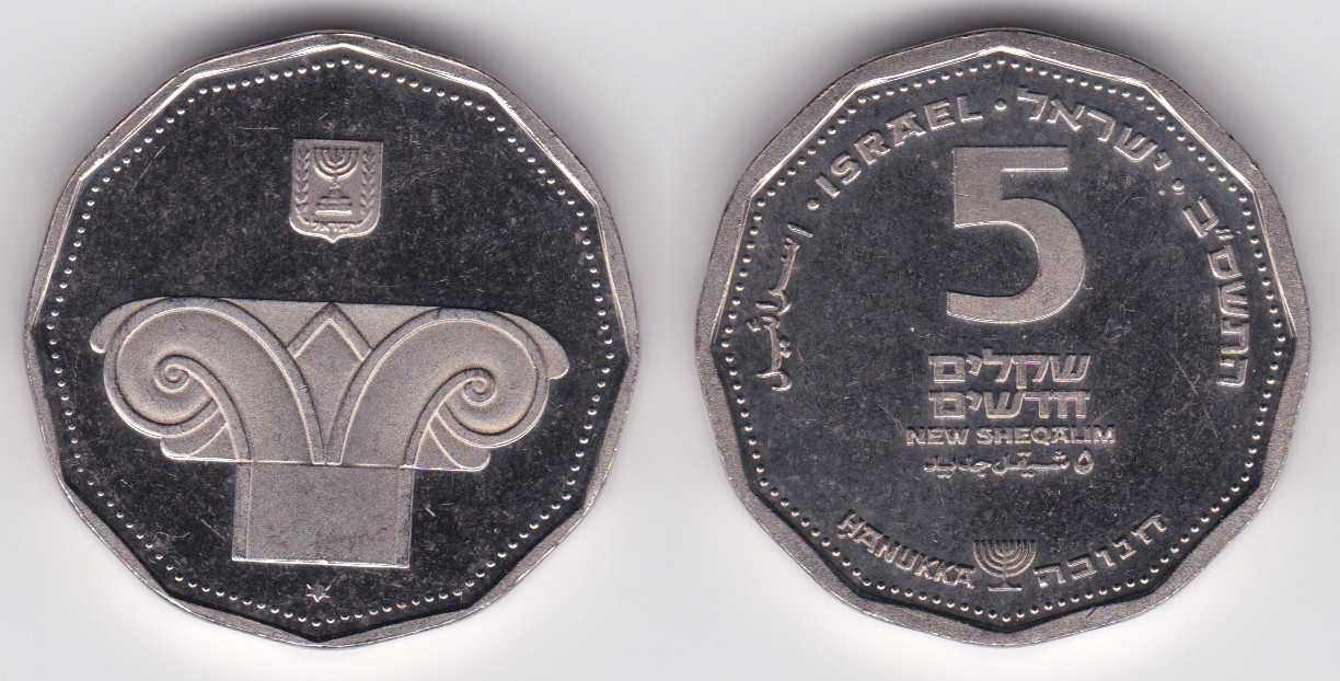 | 113829 | Israel | 2005 | km217 | 5 New Sheqalim (1991--) Hanukka | $9.00 | B |