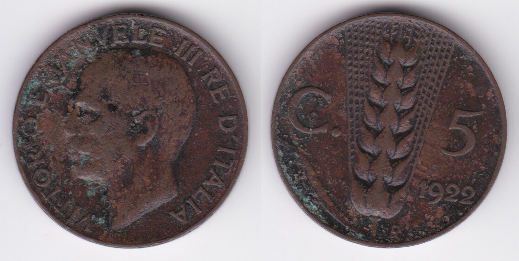 ![]() | 114177 | Italy | 1922 | km59 | 5 Centesimi (1919-1937) | $0.25 | A |