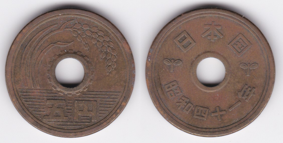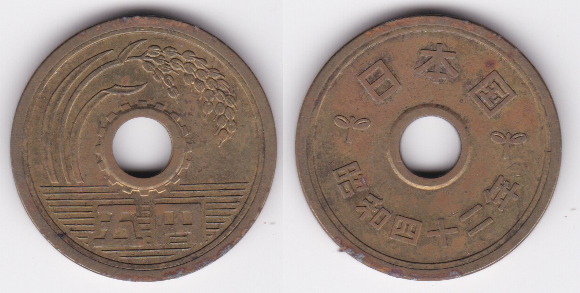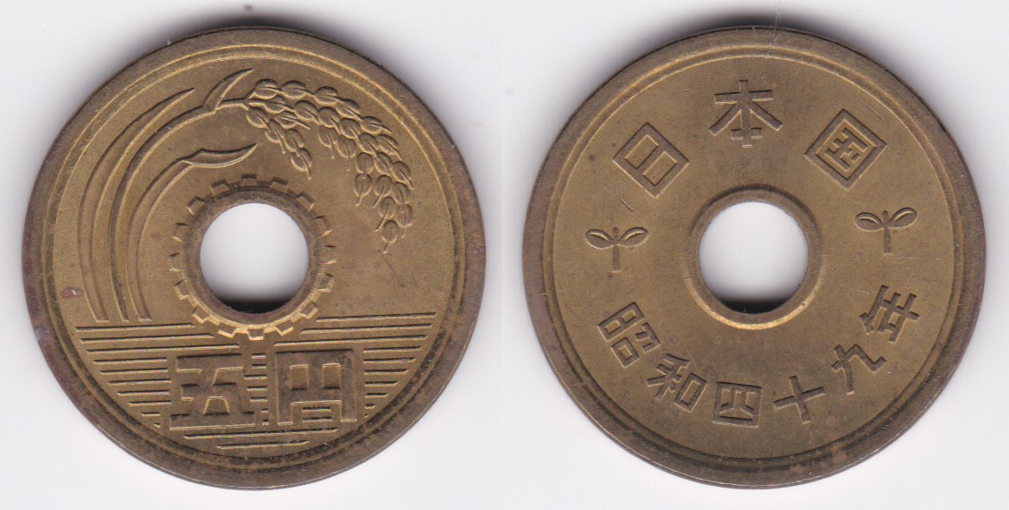 | 108906 | Japan | 1972 | y72a | 5 Yen (1959-1989) new script | $0.25 | A |