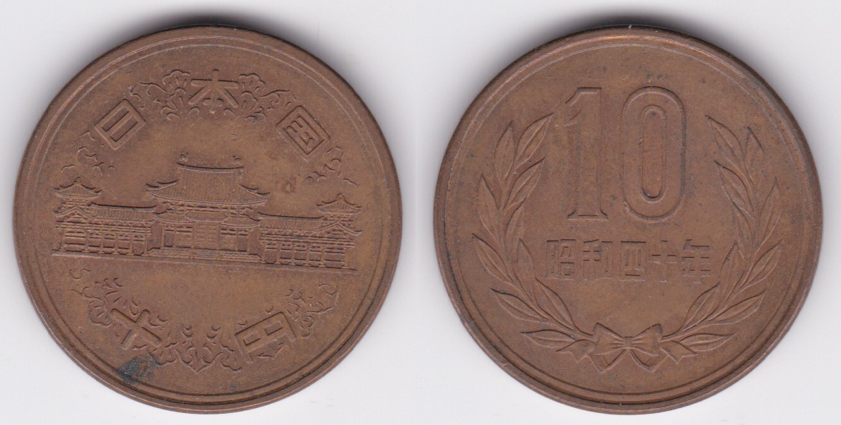 ![]() | 113194 | Japan | 1965 | y73a | 10 Yen (1959-1988) plain edge | $0.25 | A |