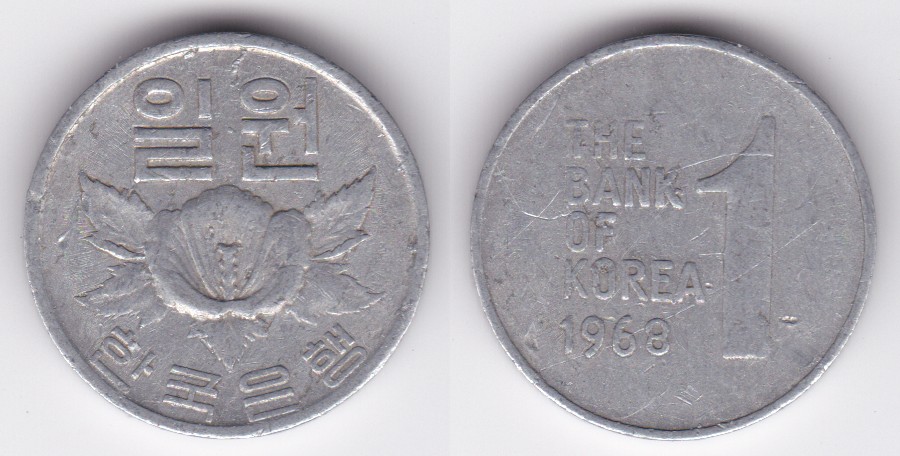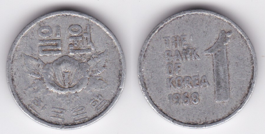 ![]() | 112784 | Korea - South | 1968 | km4a | 1 Won (1968-1982) | $0.50 | A |