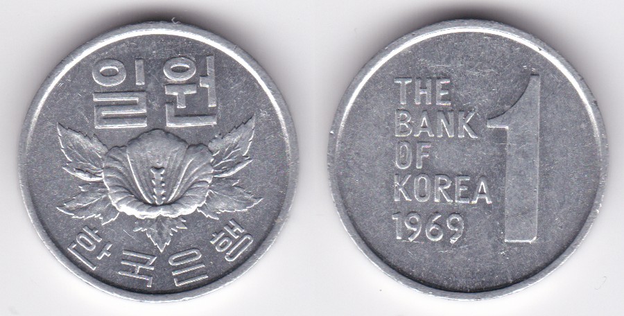 ![]() | 112787 | Korea - South | 1969 | km4a | 1 Won (1968-1982) (2 available) | $1.00 | A |