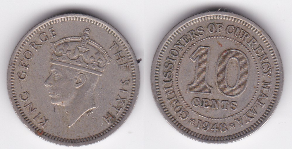 ![]() | 109814 | Malaya | 1948 | km8 | 10 Cents (1948-1950) (2 available) | $0.25 | A |