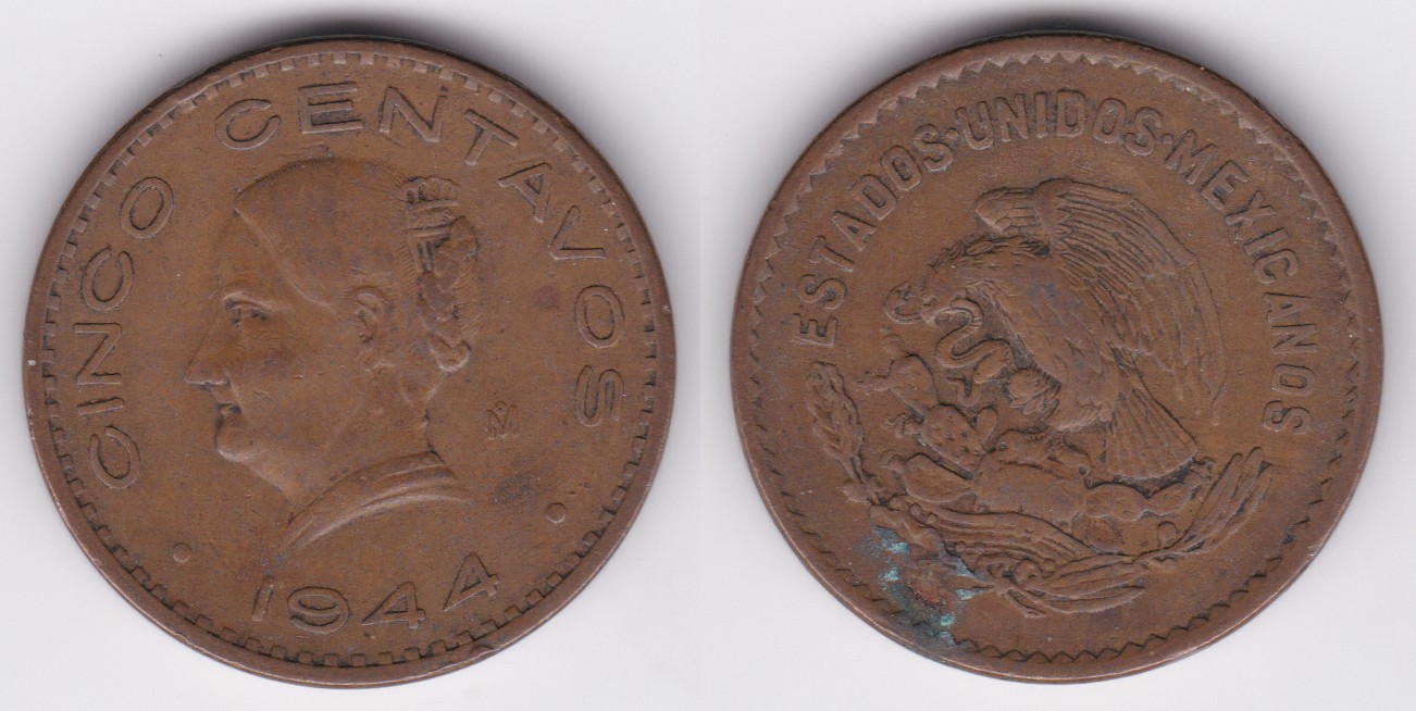 ![]() | 114173 | Mexico | 1944 | km424 | 5 Centavos (1942-1955) | $0.25 | A |