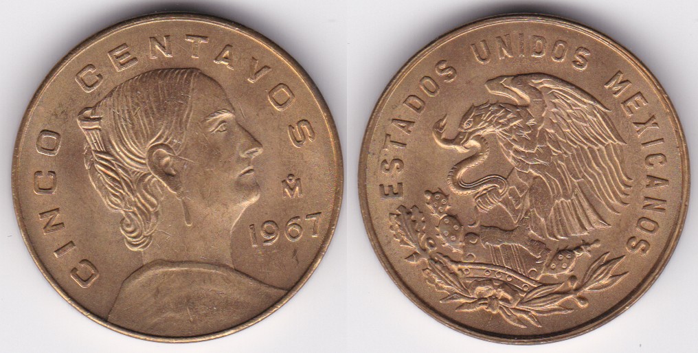 ![]() | 110317 | Mexico | 1967 | km426 | 5 Centavos (1954-1969) (2 available) | $0.25 | A |