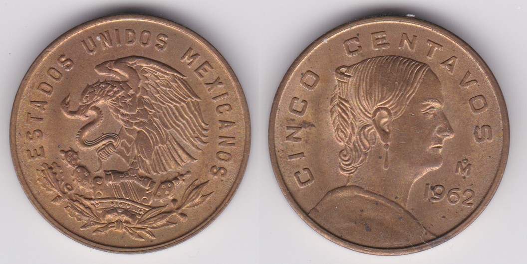 ![]() | 110322 | Mexico | 1962 | km426 | 5 Centavos (1954-1969) (2 available) | $0.25 | A |