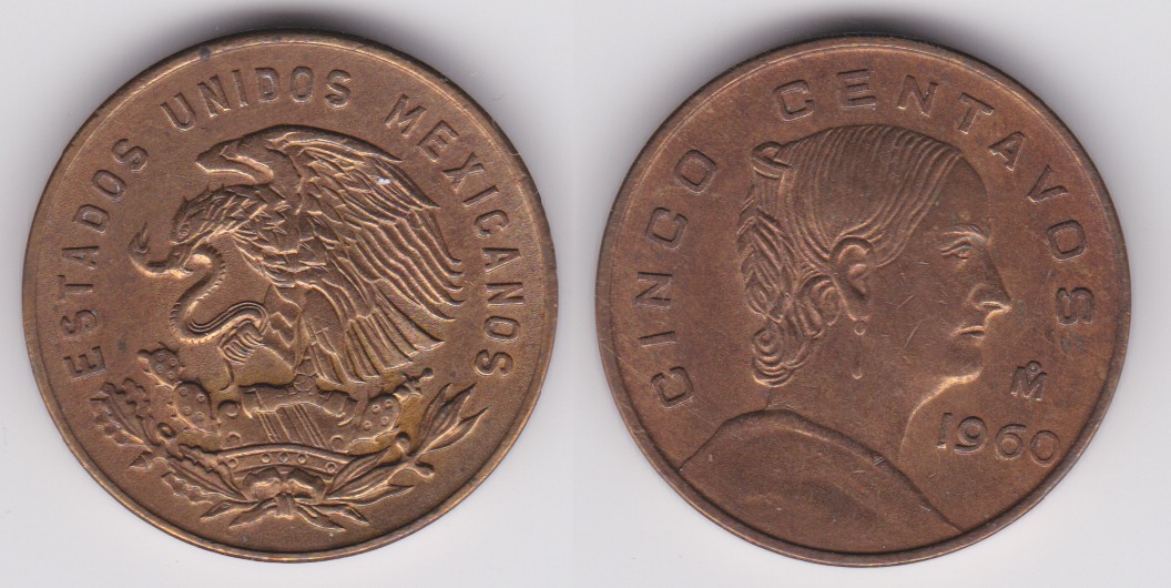 ![]() | 111823 | Mexico | 1960 | km426 | 5 Centavos (1954-1969) | $0.50 | A |