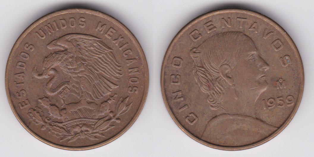 ![]() | 110325 | Mexico | 1959 | km426 | 5 Centavos (1954-1969) | $0.25 | A |