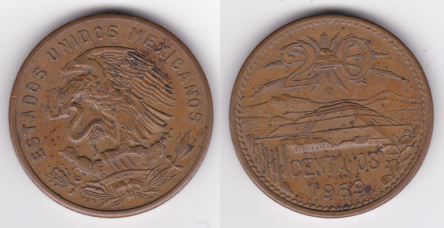 ![]() | 110348 | Mexico | 1960 | km440 | 20 Centavos (1955-1971) | $0.75 | A |