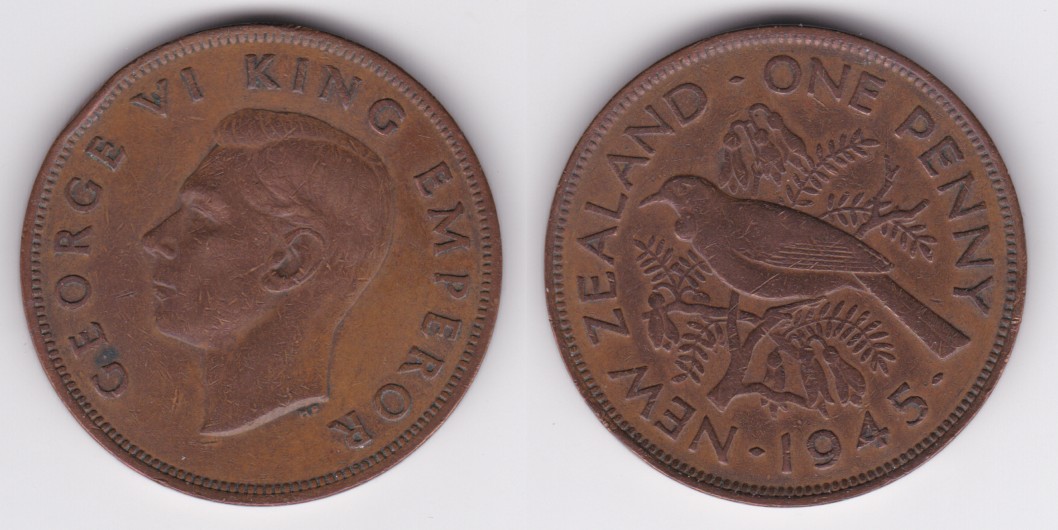 ![]() | 115480 | New Zealand | 1945 | km13 | 1 Penny (1940-1947) Tui Bird | $0.25 | A |