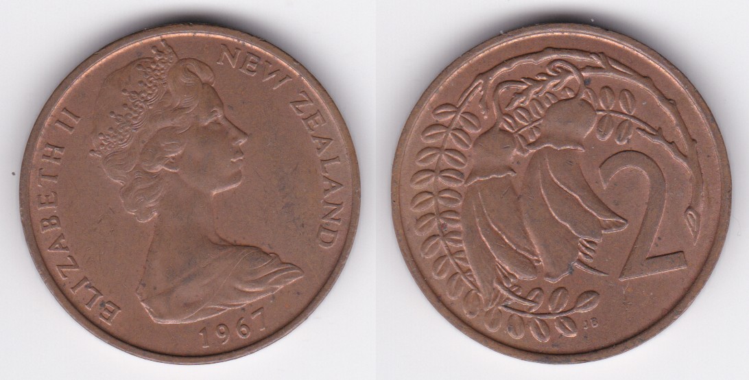 ![]() | 112812 | New Zealand | 1967 | km32.1 | 2 Cents (1967-1988) | $0.50 | A |