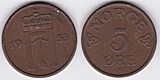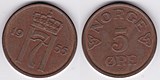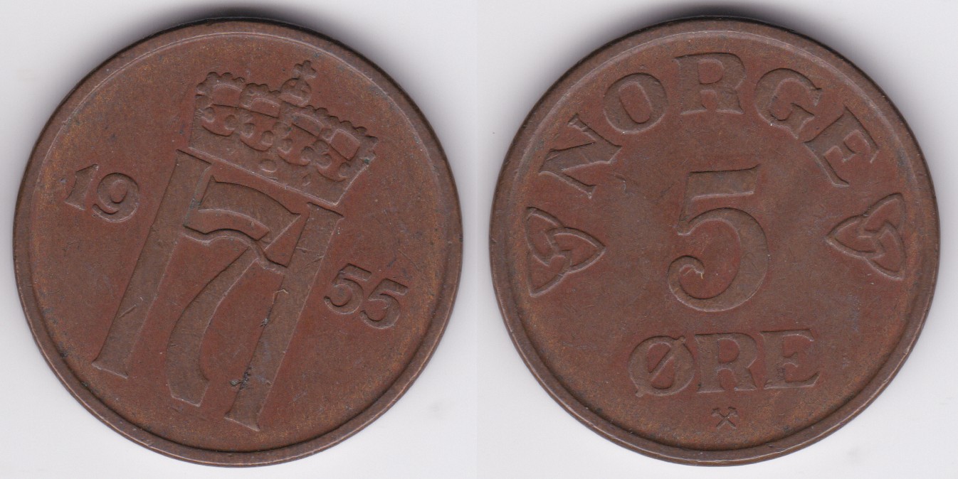 ![]() | 114295 | Norway | 1955 | km400 | 5 Ore (1952-1957) (3 available) | $0.50 | A |