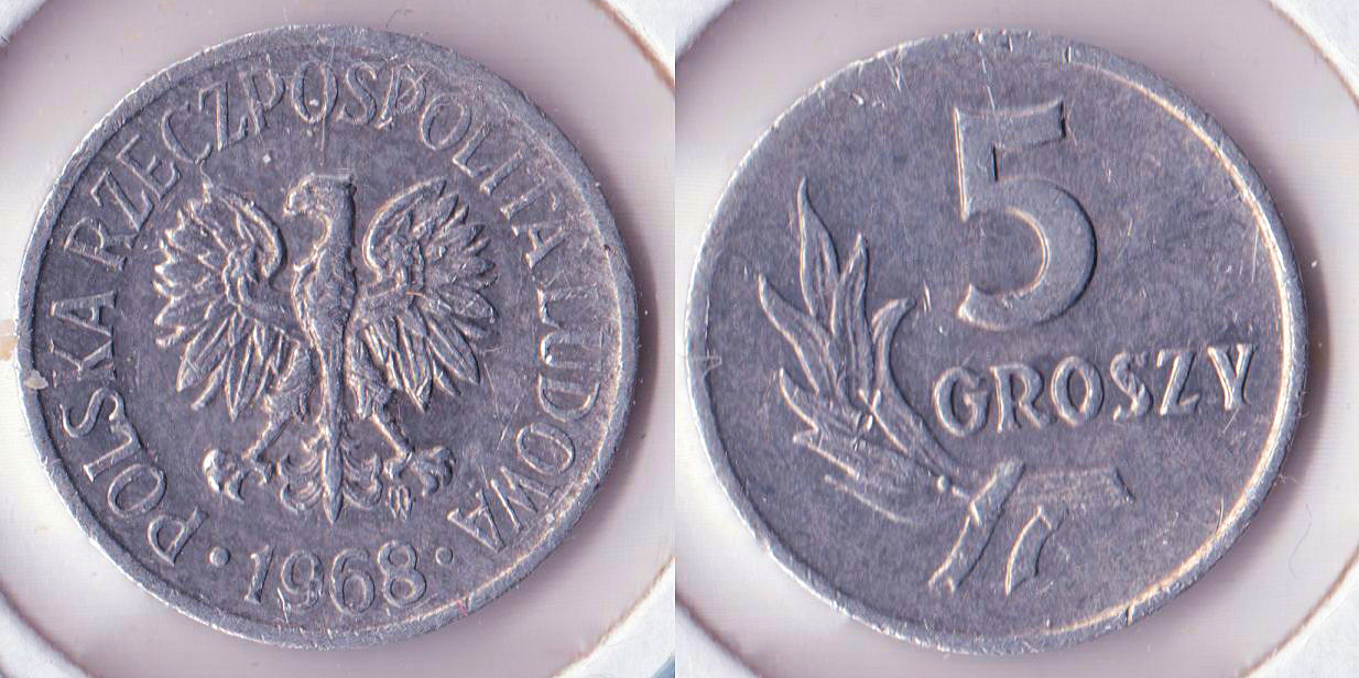 ![]() | 79677 | Poland | 1968 | yA46 | 5 Groszy (1958-1972) aluminum | $0.25 | A |