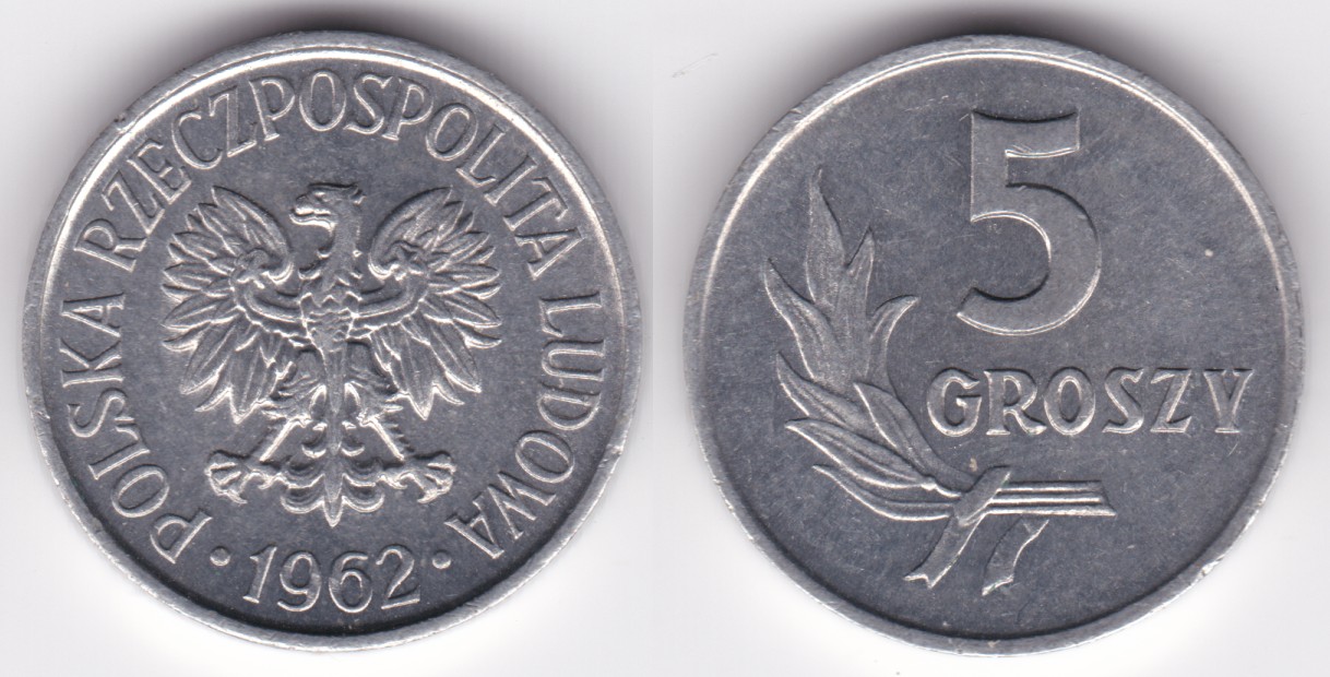 ![]() | 108264 | Poland | 1962 | yA46 | 5 Groszy (1958-1972) aluminum (3 available) | $0.25 | A |