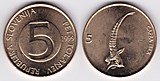 ![]() | 114301 | Slovenia | 1998 | km6 | 5 Tolarjev (1992-2006) (4 available) | $1.00 | A |