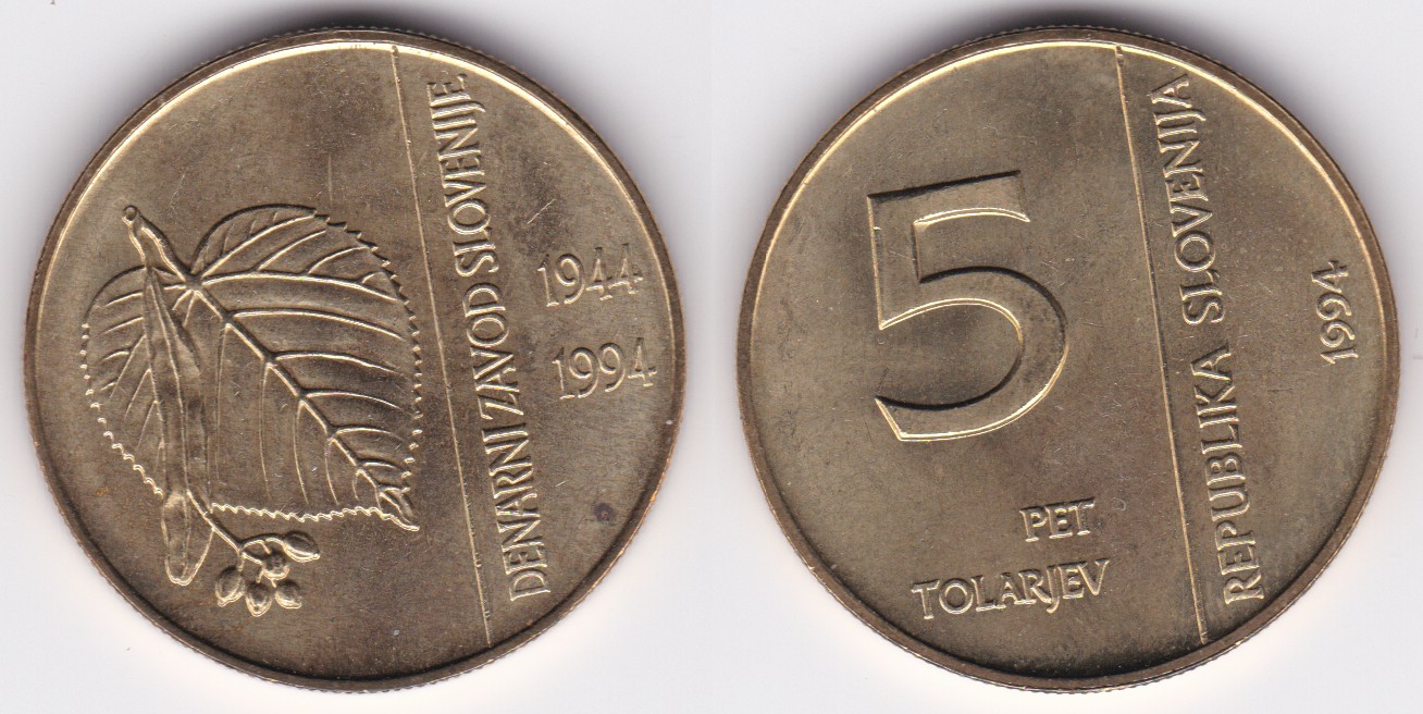 5 Tolarjev (1994) 50 Yrs. Slovenian Bank