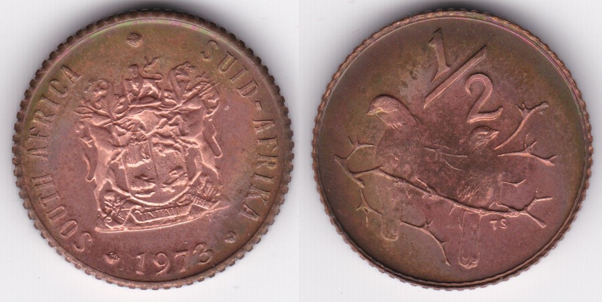 ![]() | 114258 | South Africa | 1973 | km81 | 1/2 Cent (1970-1983) (2 available) | $1.00 | A |