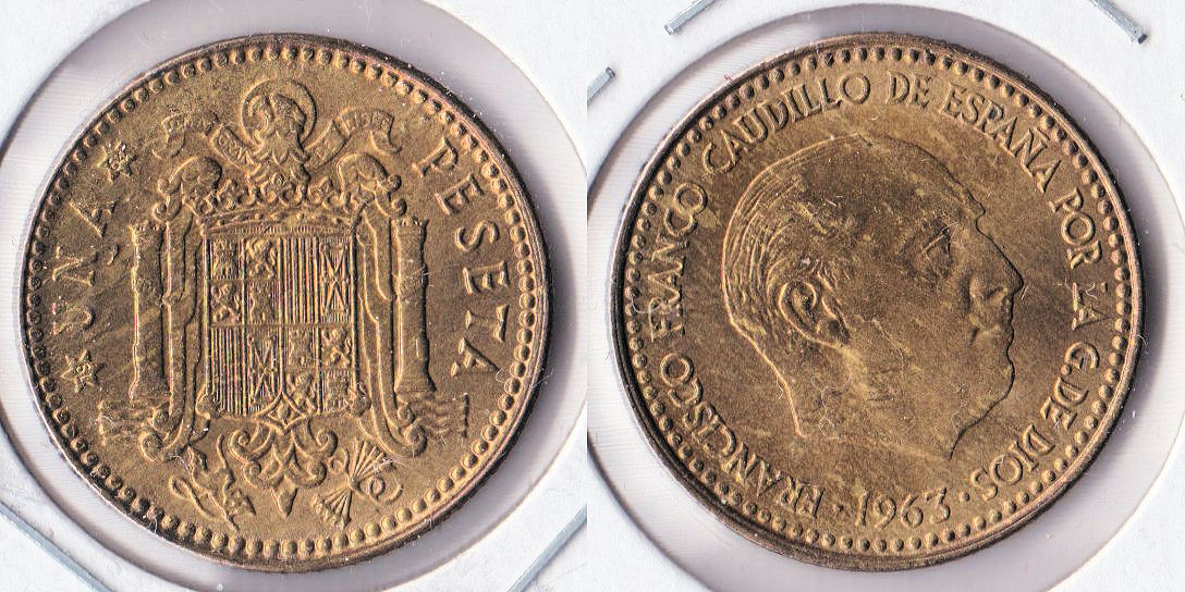 ![]() | 96263 | Spain | 1963 | km775 | 1 Peseta (1947-1967) Dictadura | $0.25 | A |