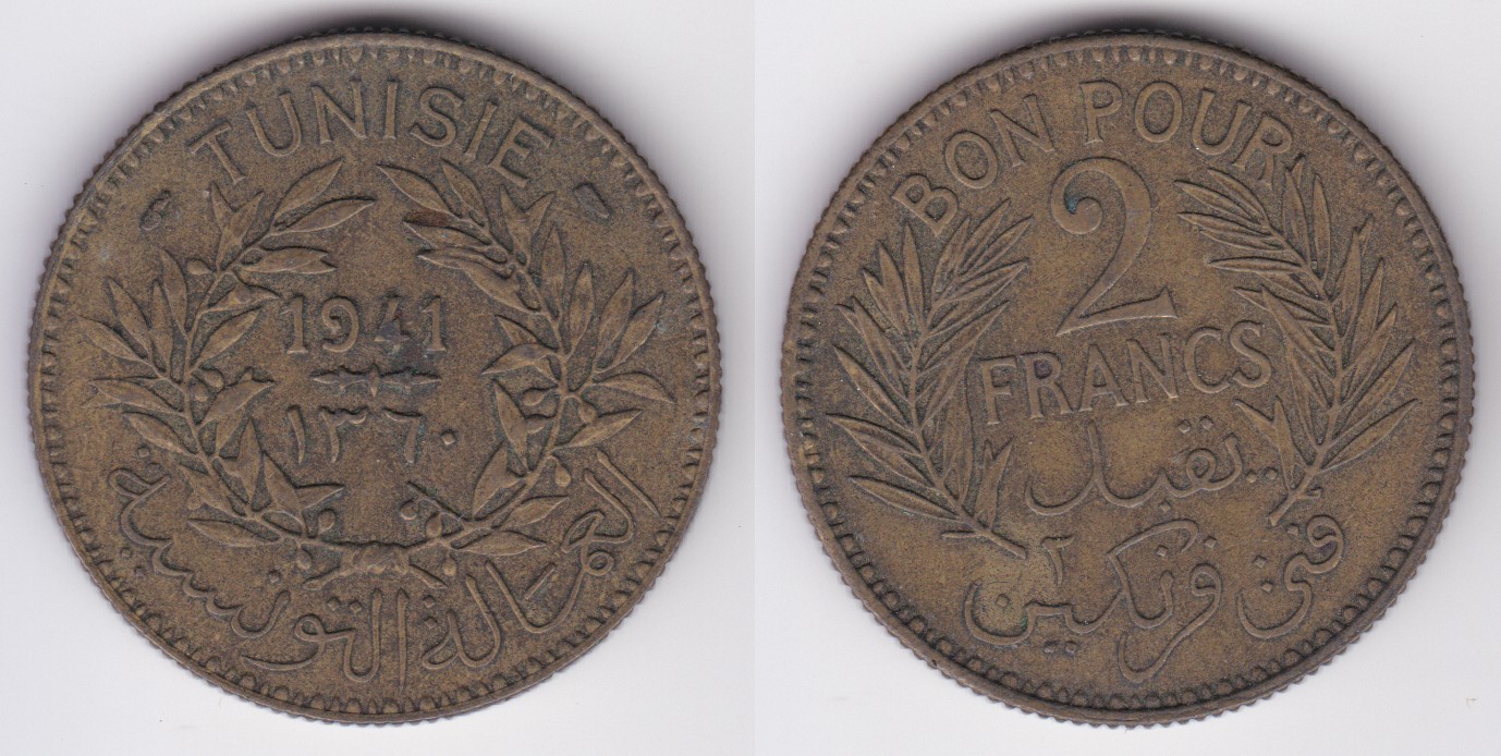 ![]() | 104804 | Tunisia | 1941 | km248 | 2 Francs (1921-1945) al-bronze | $2.50 | A |