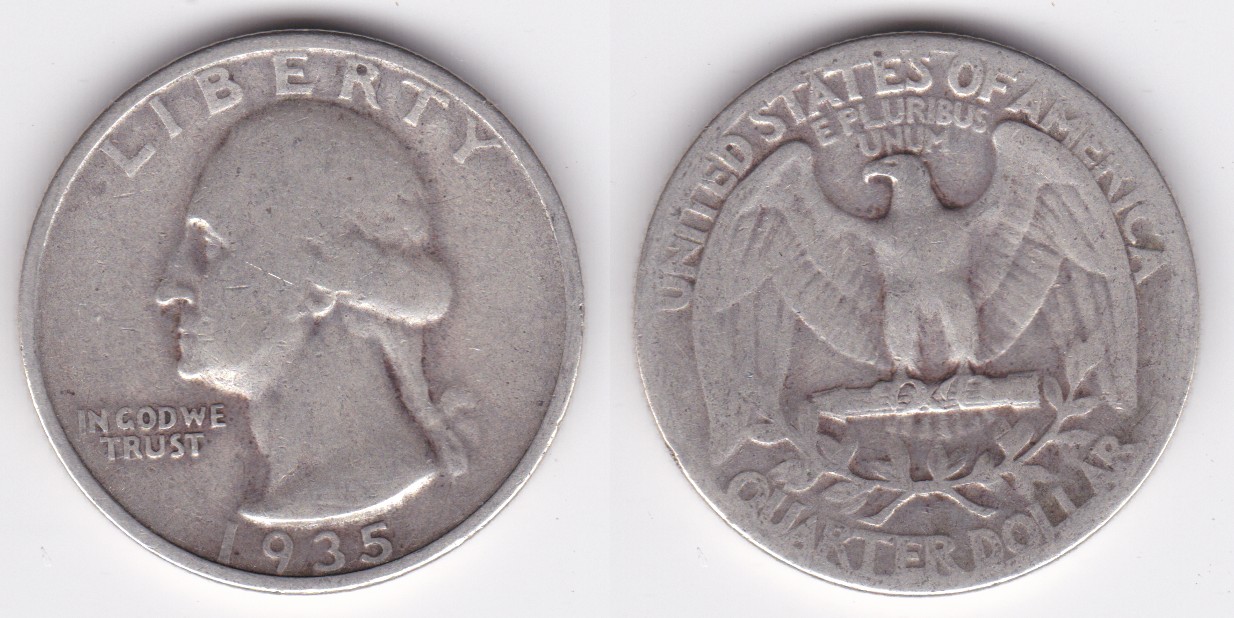 ![]() | 112860 | United States of America | 1935 | km164 | quarter dollar (1932-1964) Washington silver | $10.00 | A |