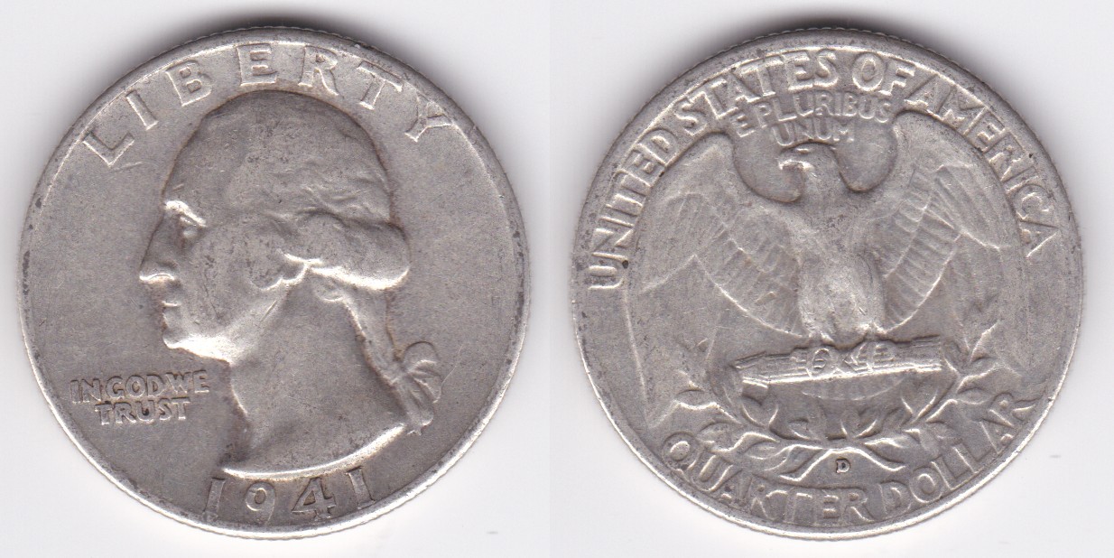 ![]() | 112880 | United States of America | 1941 | km164 | quarter dollar (1932-1964) Washington silver | $9.75 | A |