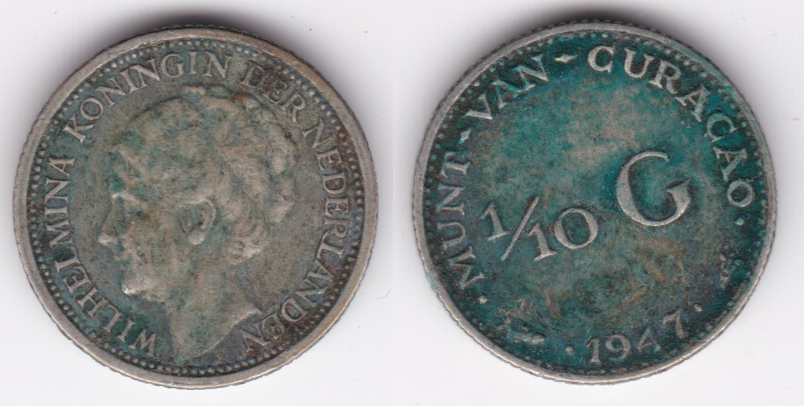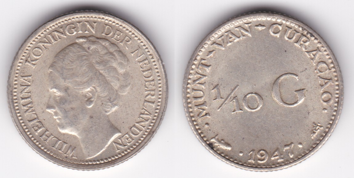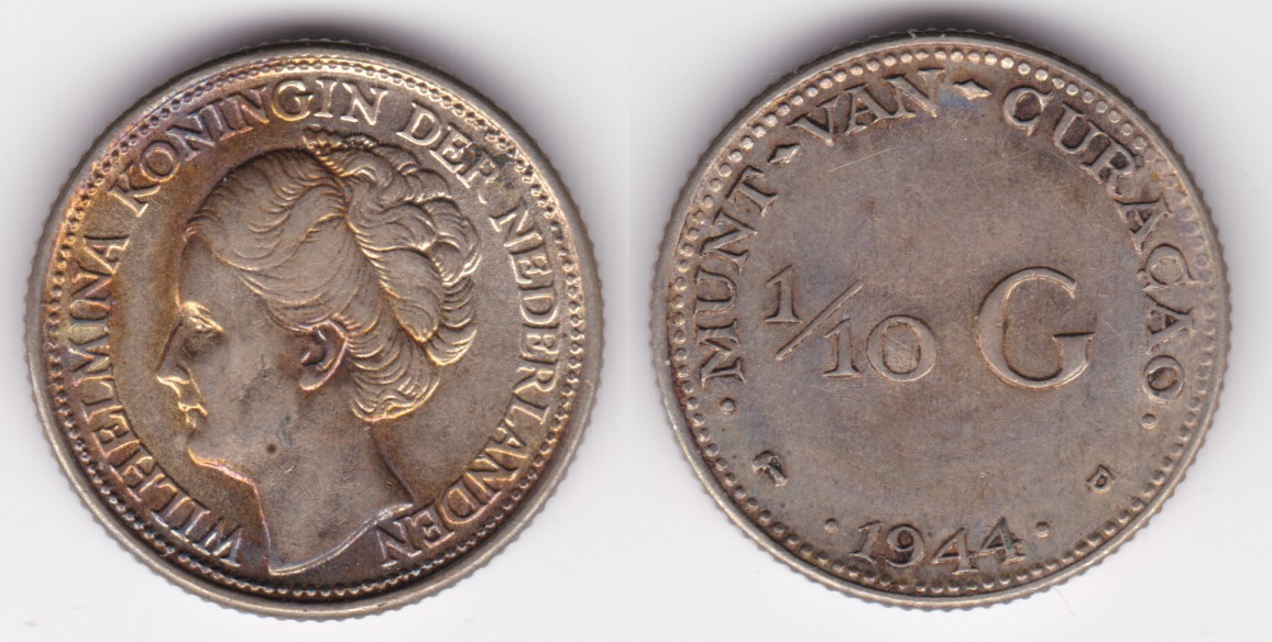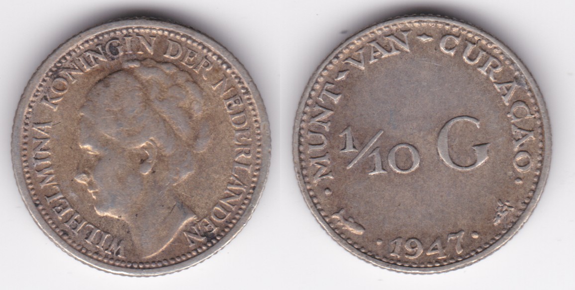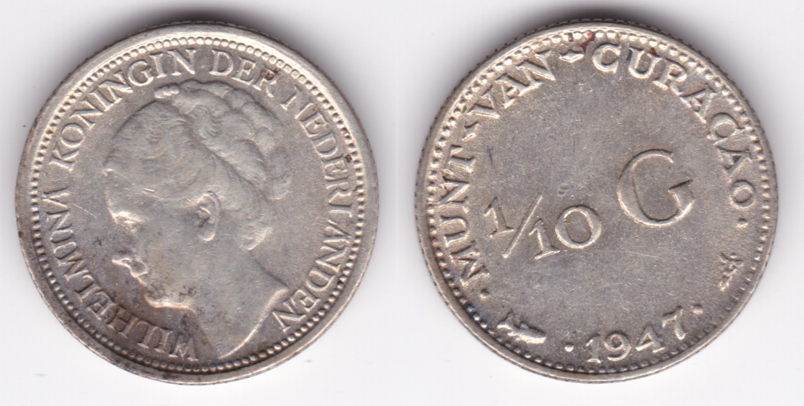 Curacao km43 1/10 Gulden (1944,1947)