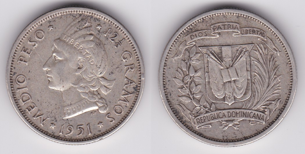Dominican Republic km21 1/2 Peso (1937-1961) silver
