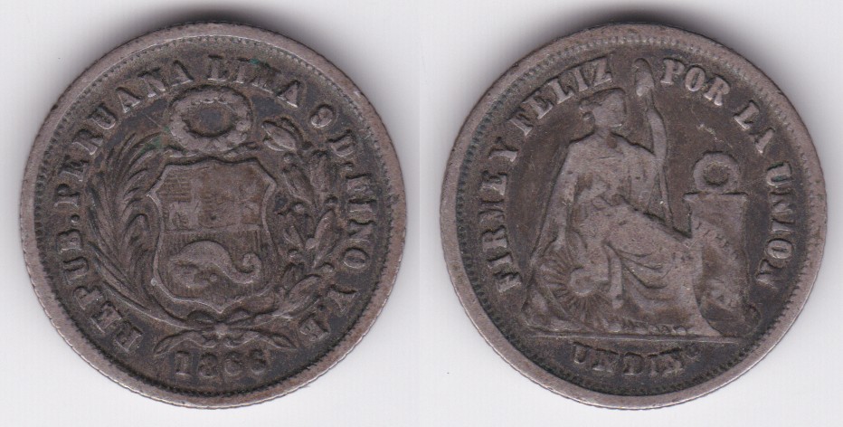 Peru km190 1 Dinero (1863-1877)