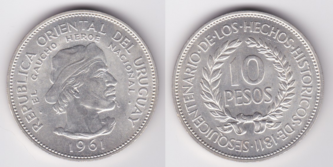 Uruguay km43 10 Pesos (1961) Gaucho